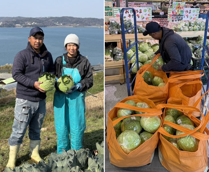入部裕太さんご夫妻は、瀬戸内市牛窓町前島の広大な土地を活用し、温暖・花崗岩の土・ミネラル豊富な潮風で年間を通してキャベツ、白菜、ブロッコリー、かぼちゃなど、丹精込めて栽培しています。